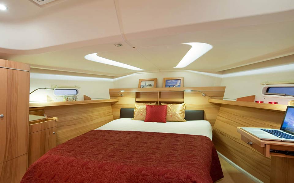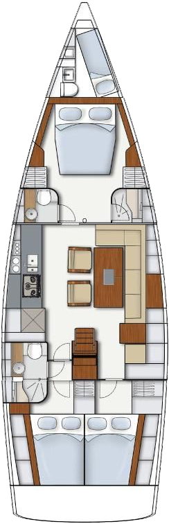 3 cabines avec lit double ainsi que la table dans le carré qui se transforme en lit double)